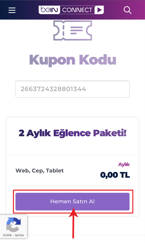 Digiturk uydu üyeliği bulunan üyeler, Digiturk’e kayıtlı bilgileriyle beIN Connect kupon kodunu aktif ederken “Şu anda işleminizi gerçekleştirememekteyiz. Digiturk müşteri hizmetleriyle iletişime geçiniz.” hatası almaktadır. Bu durumda ailenizden farklı birinin üzerine yeni üyelik oluşturarak beIN Connect kupon kodunuzu aktif edebilirsiniz.