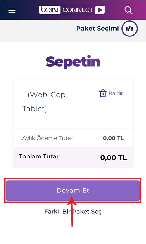 3- Paket detaylarını son kez kontrol ettikten sonra "Devam Et" butonuna tıklayın.